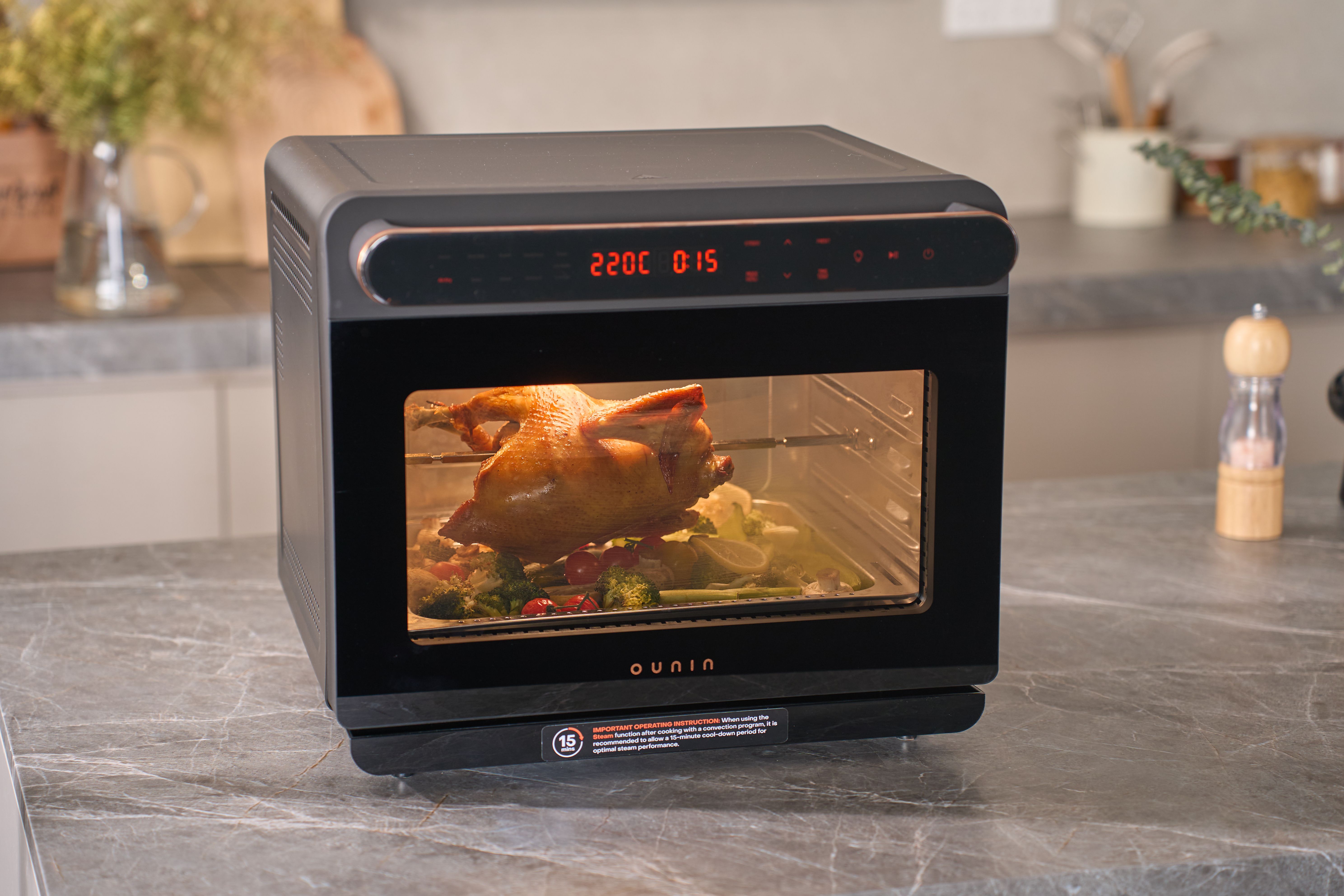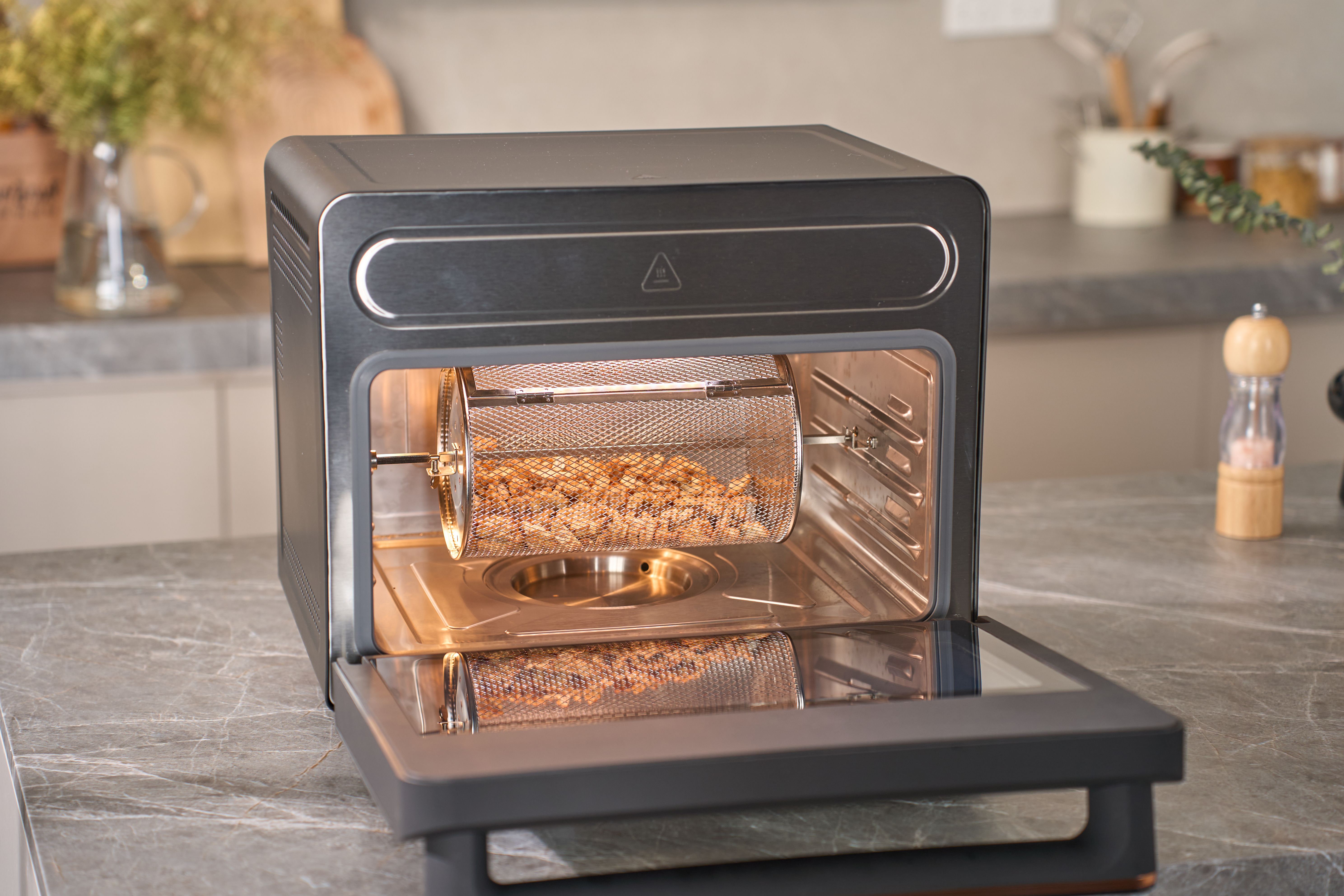 Rotisserie With a 360-degree rotation, the rotisserie function evenly heats the meat, ensuring a crispy exterior while keeping the inside tender and juicy. Each dish releases rich aromas, providing a perfect culinary experience and allowing you to easily enjoy restaurant-quality flavors at home. |