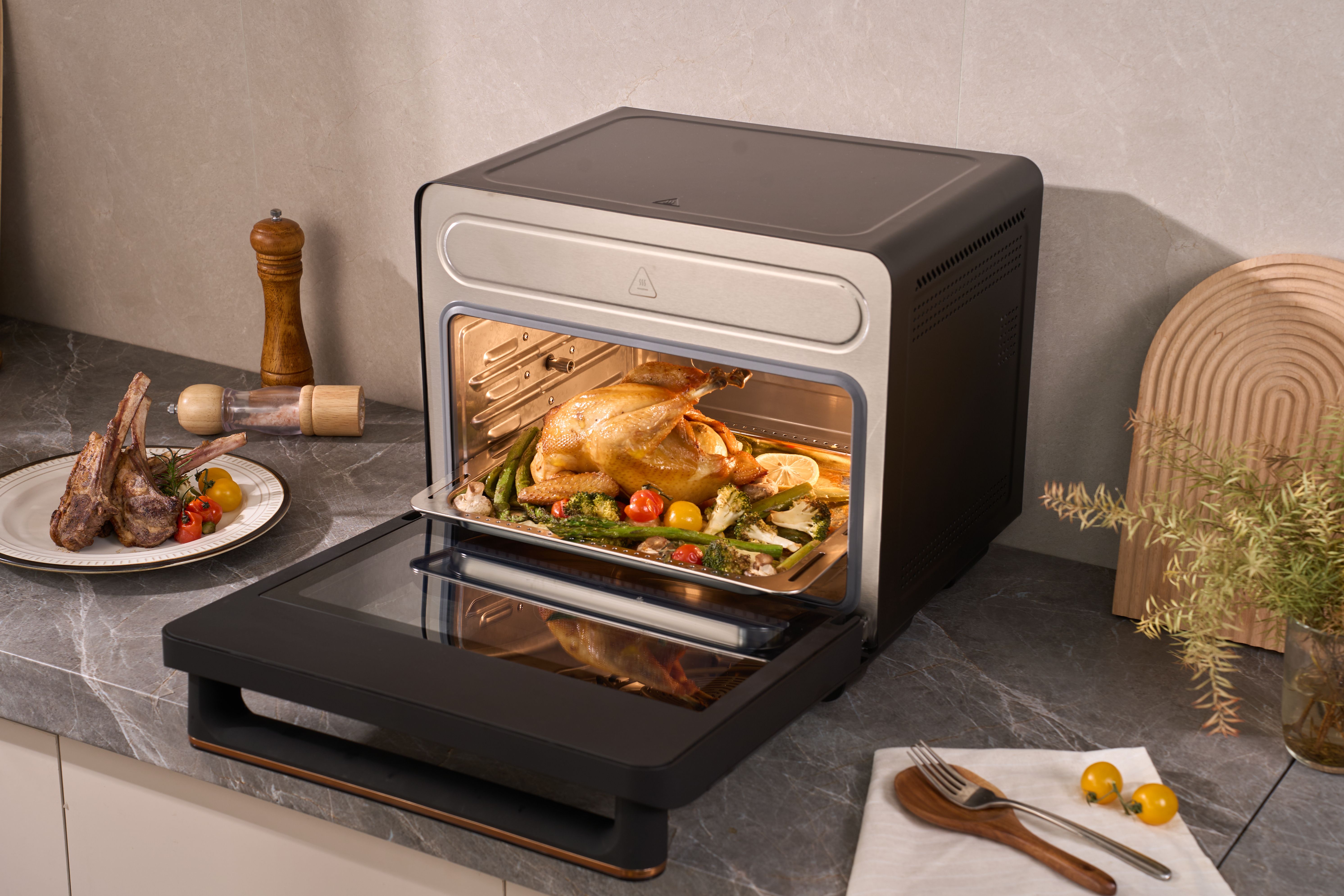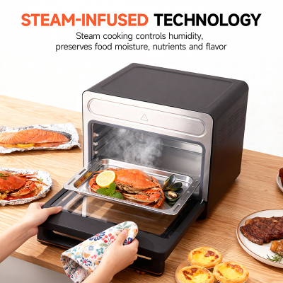 Combined Cooking Function With combined steam and bake modes, steam injection technology enhances your dishes by adding moisture during roasting, delivering juicy interiors and crispy exteriors for perfectly tender yet crisp textures. |
