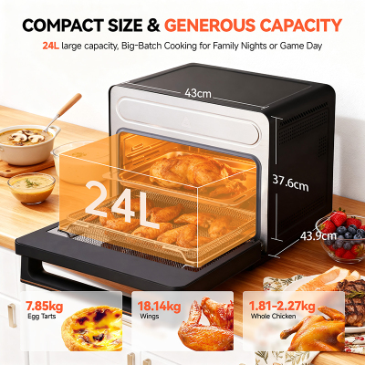 XL Family-sized Capacity Designed for large families and entertaining, 25.4QT capacity can cook a 2.6lb whole roasted chicken, a 10-inch pizza or cake, or family-sized meals all at once. |
